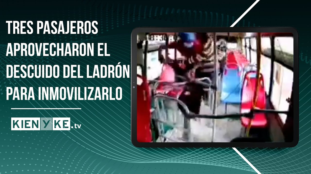 Cuando les da la espalda y se dispone a bajar del bus, uno de los pasajeros lo agarra por detrás y forsejea con el ladrón. Las dos mujeres también reaccionan y ayudan a inmovilizar al sujeto que los había atracado. Minutos después llega una patrulla de la policía a encargarse de la situación.